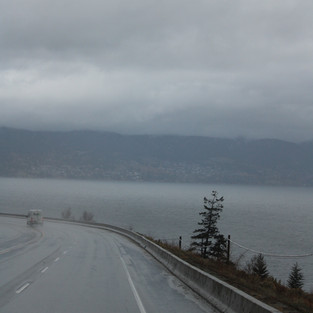 After picking up Newman from the spa and reuniting Jerry and Newman, we hit the road for Lake Country. The drive up along Lake Okanagan was amazing! Even though it was raining (and the new wiper arms worked like a charm), the vistas were stunning!